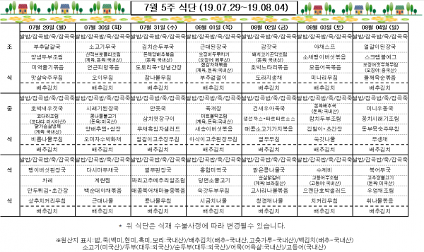 7월 5주 식단표
