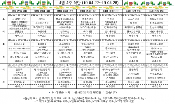 4월 4주 식단표