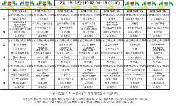 2월 1주 식단표