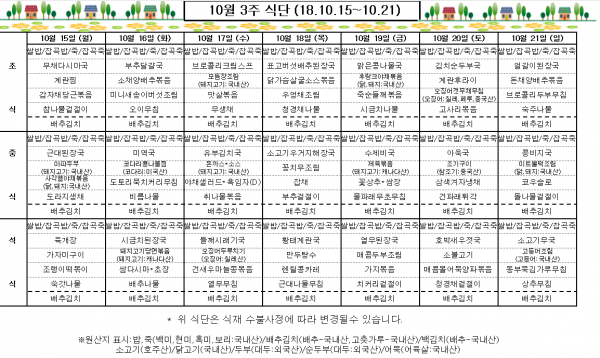 "금주의 식단 메뉴를 확인 할 수 있습니다."