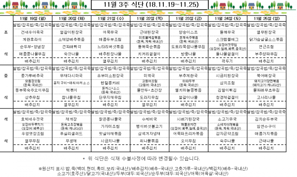 "금주의 식단 메뉴를 확인 할 수 있습니다."