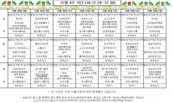 12월 4주 식단표