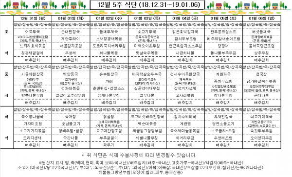 12월 5주 식단표