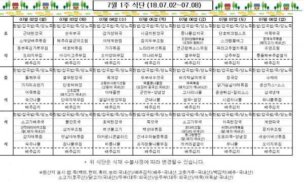 7월 1주 식단표