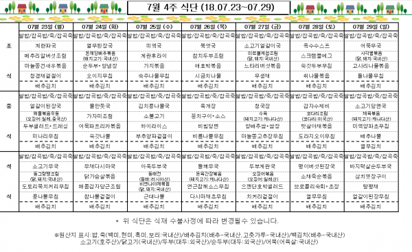 7월 4주 식단표