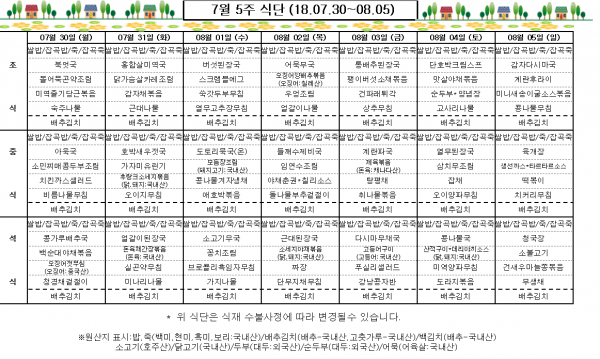 7월 5주 식단표