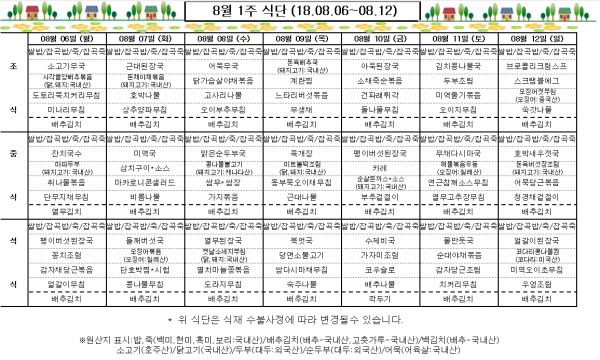 8월 1주 식단표