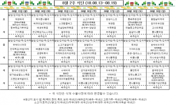 8월 2주 식단표