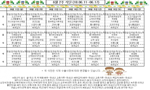 6월 2주 식단표
