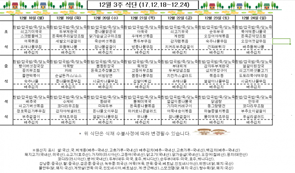 12월 3주 식단표