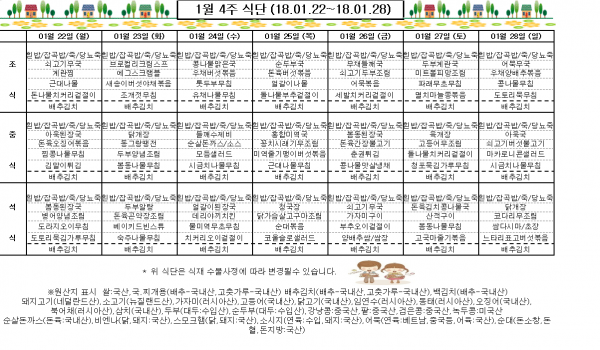 1월4주 식단표