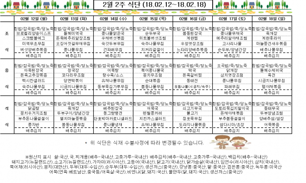 "금주의 식단 메뉴를 확인 할 수 있습니다."