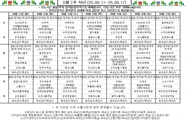 8월 2주 식단표