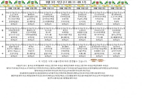 "금주의 식단 메뉴를 확인 할 수 있습니다."
