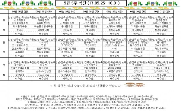 9월 5주 식단표