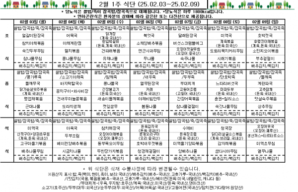 2월 1주 식단표