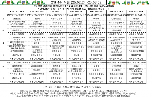 "금주의 식단 메뉴를 확인 할 수 있습니다."