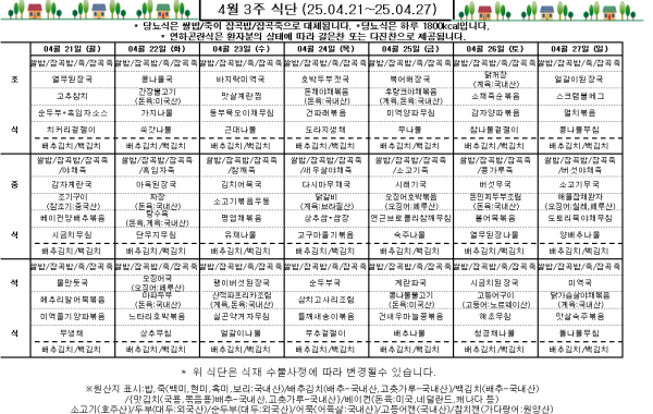 4월 3주 식단표