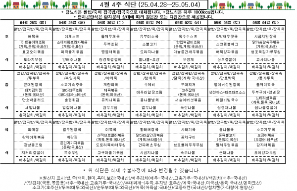 4월 4주 식단표