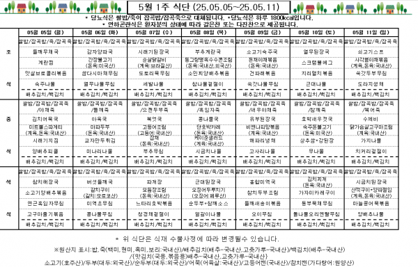 5월 1주 식단표