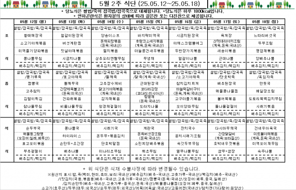 5월 2주 식단표