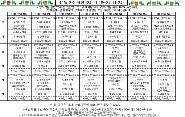 11월 3주 식단표