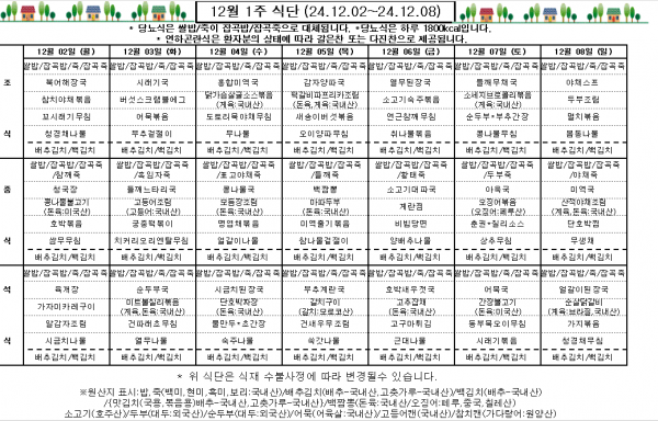 "금주의 식단 메뉴를 확인 할 수 있습니다."