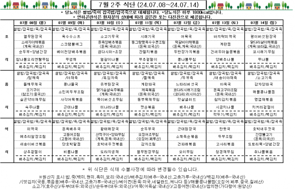 "금주의 식단 메뉴를 확인 할 수 있습니다."