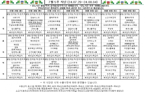 7월 5주 식단표