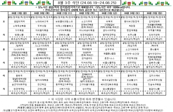 "금주의 식단 메뉴를 확인 할 수 있습니다."