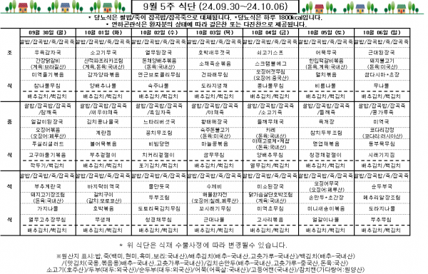 "금주의 식단 메뉴를 확인 할 수 있습니다."