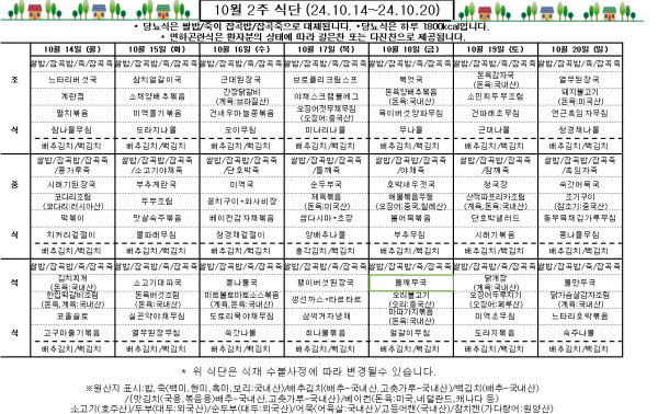"금주의 식단 메뉴를 확인 할 수 있습니다."
