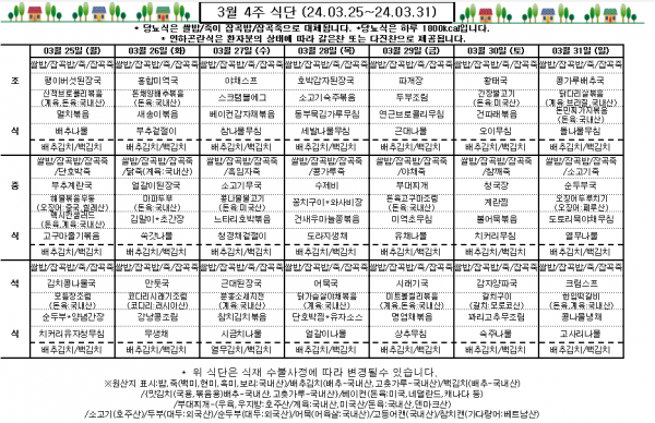 "금주의 식단 메뉴를 확인 할 수 있습니다."