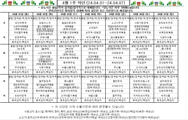 4월 1주 식단표