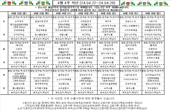 4월 4주 식단표