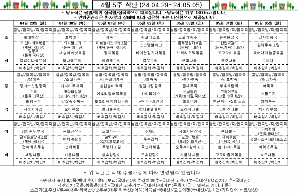 4월 5주 식단표