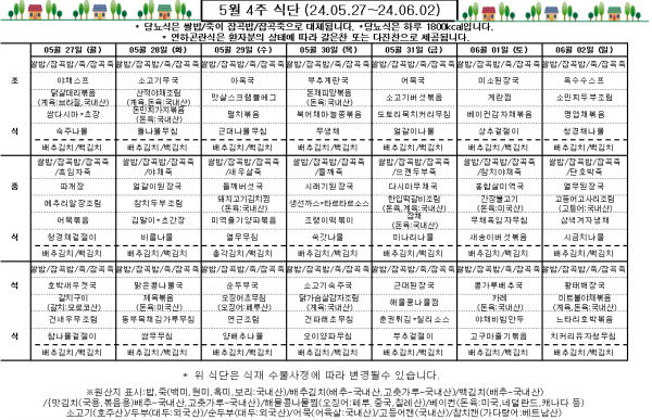 5월 4주 식단표