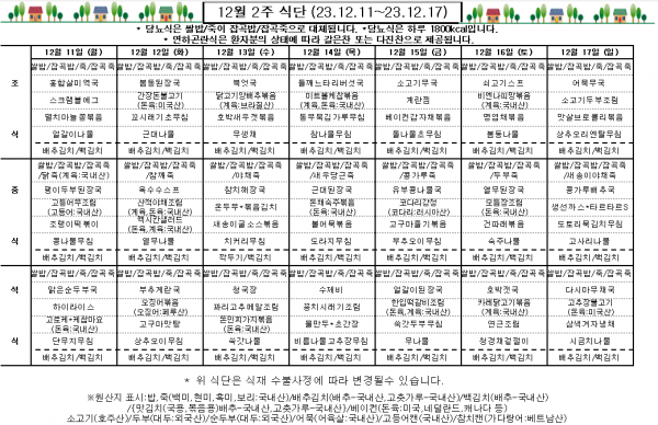 "금주의 식단 메뉴를 확인 할 수 있습니다."