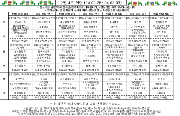 2월 4주 식단표