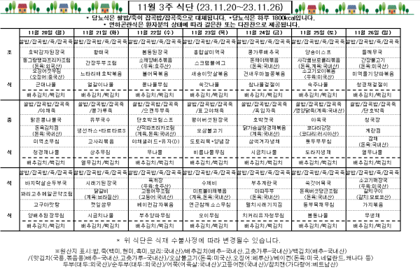 11월 3주 식단표