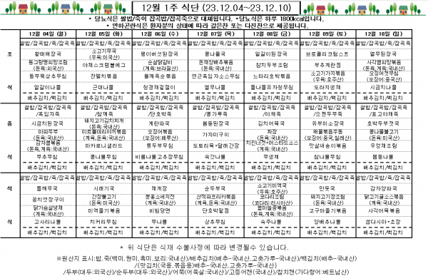 12월 1주 식단표