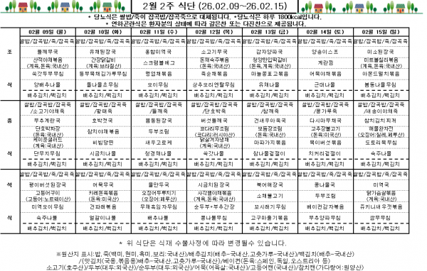 2월 2주 식단표