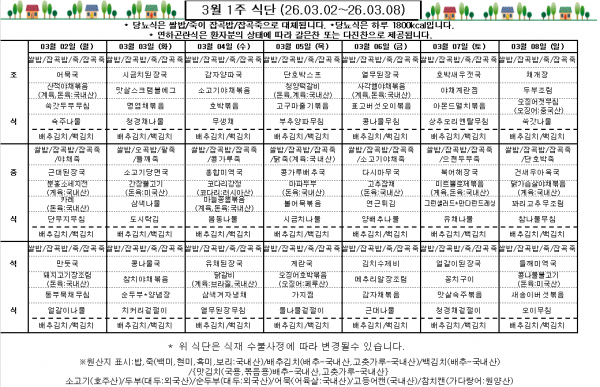 "금주의 식단 메뉴를 확인 할 수 있습니다."